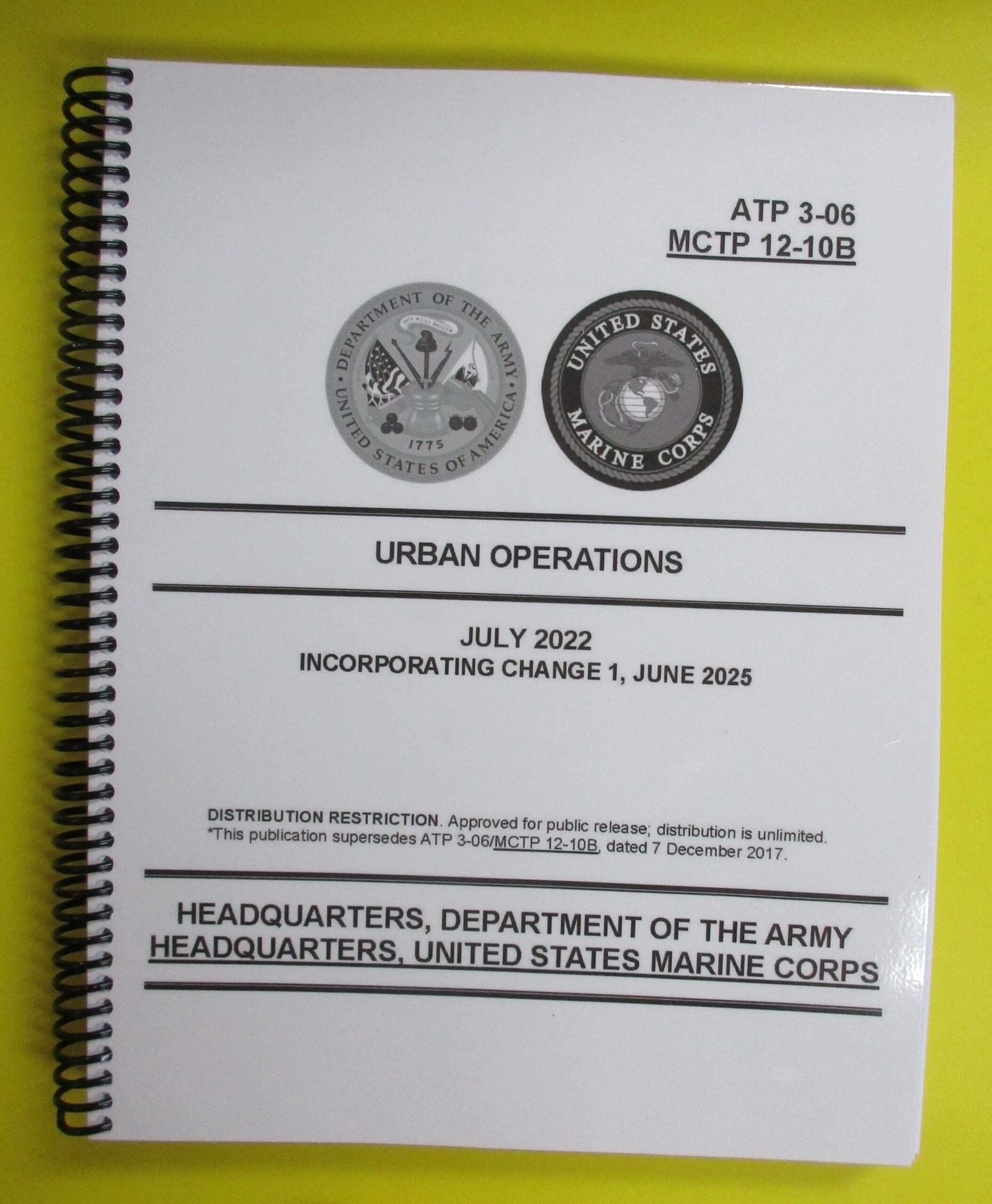 ATP 3-06 Urban Operations/MCTP 12-10B is a dual-designated Army and Marine Corps manual that provides Soldiers/Marines with many of the concepts and techniques associated with conducting urban operations (UO).