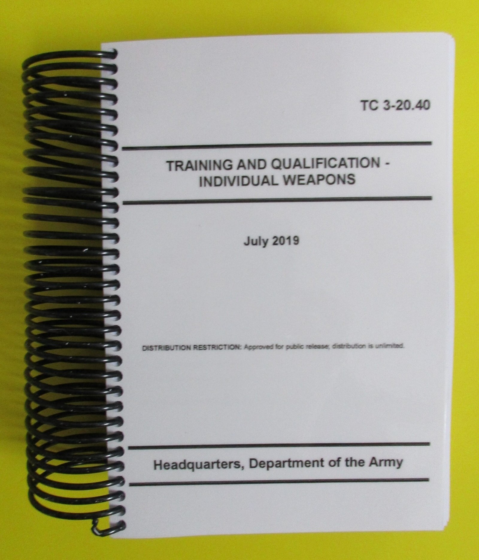 TC 3-20.40 provides the outline for all individual weapon’s training strategies, resources, prerequisites, and requirements for planning and executing training. It provides a single reference for commanders, staff, planners, and trainers.
